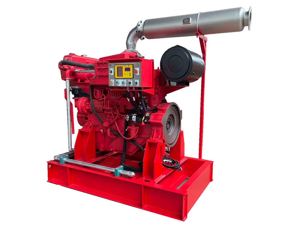 - 柴油机根据流量变化自动AI调节转速,受智能功率控制,在1.5倍额定流量下满足规定的扬程,并确保柴油机的Pn满足消防泵性能曲线上任一点的功率需求。